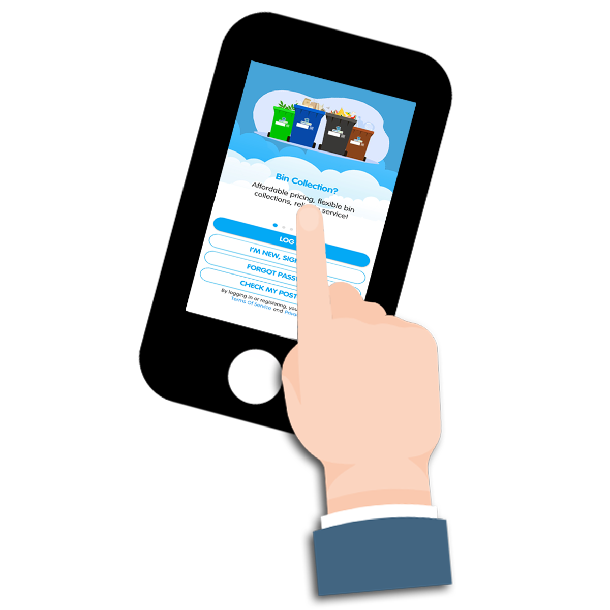 Enter your address → select Bin Washing → choose your preferred date → select the bin to be washed → pick a one-off or recurring schedule → review your summary and complete payment in the app.
